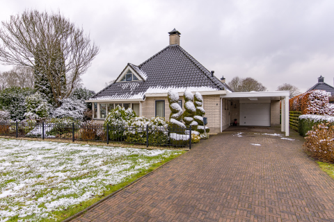 In bosrijke omgeving gelegen uitstekend onderhouden en geheel gemoderniseerd vrijstaand woonhuis (type stolpwoning) met slaapkamer en badkamer op de begane grond en aangebouwde stenen garage op een perceel van 639 m2 grond.